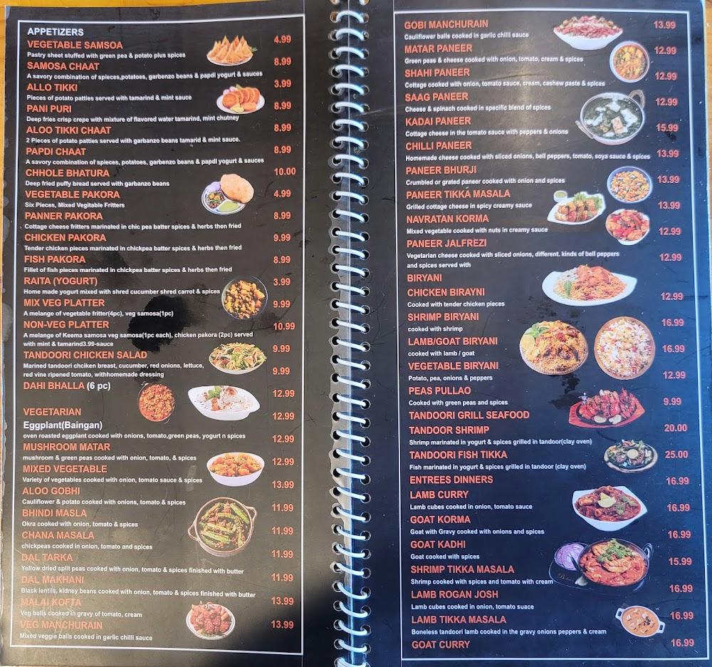 Tandoori Grill's menu features a diverse assortment of Indian and South Indian dishes, appealing to all tastes. Start with appetizing selections like Samosa Chaat or Chicken Pakora. The Tandoori section features grilled meats, such as Tandoori Chicken and Lamb Chops, cooked to perfection in a clay oven. For vegetarian diners, options like Shahi Paneer and Dal Tadka shine with rich flavors. The restaurant offers various dosas, including Masala and Chocolate varieties. The biryani dishes make a hearty main course selection. Desserts like Gulab Jamun complete the meal on a sweet note. Overall, the menu embraces culinary traditions while providing a range of choices that cater to various preferences.